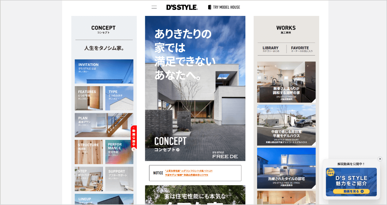 建設・工務店のホームページは、近年デザインの質が飛躍的に向上しており、その会社独自の家づくりへのこだわりやブランドの世界観を、直感的に伝えるサイトが増えてきました。