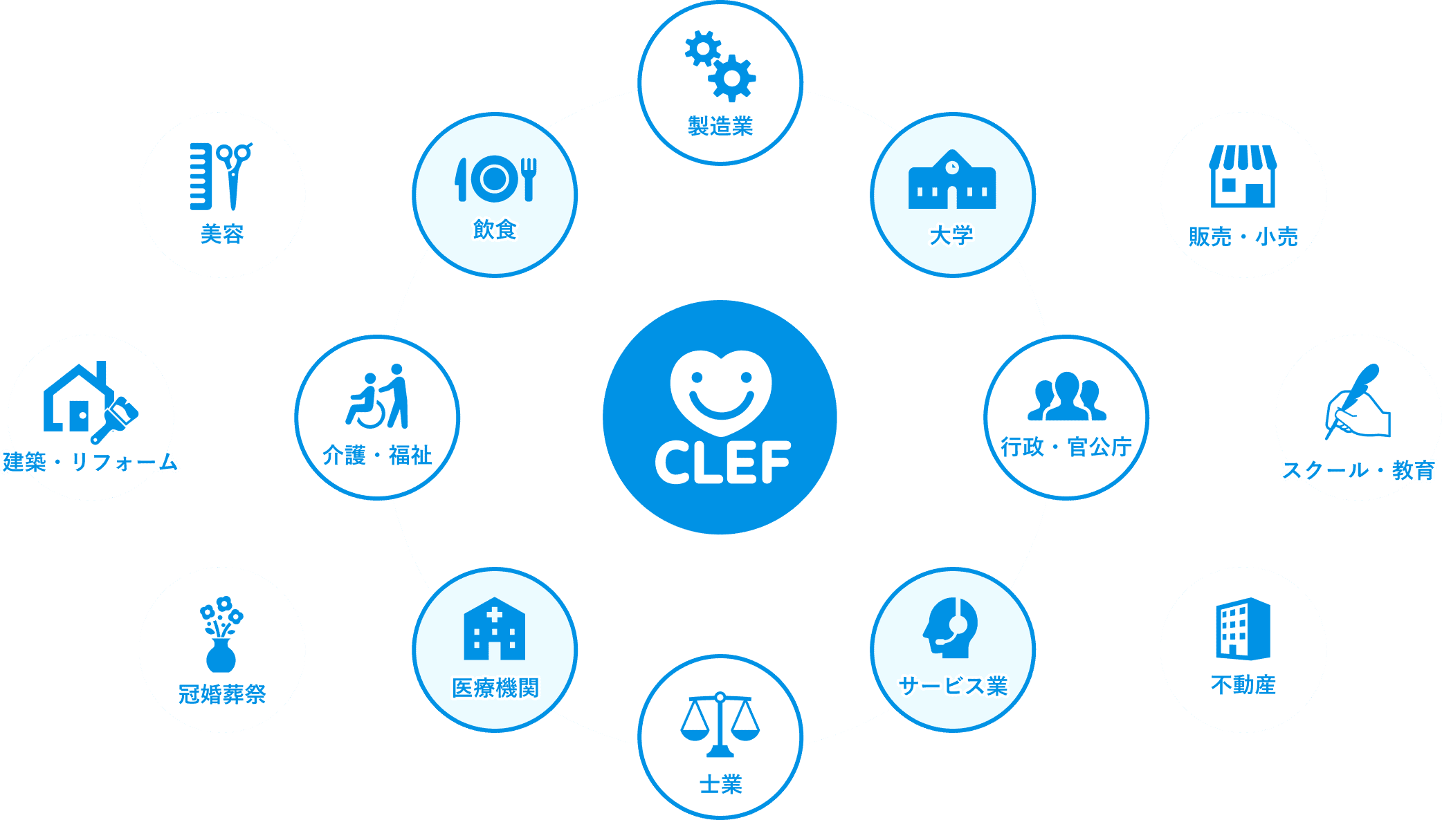 私たちクレフは、業界を問わず、様々な企業規模に対応した