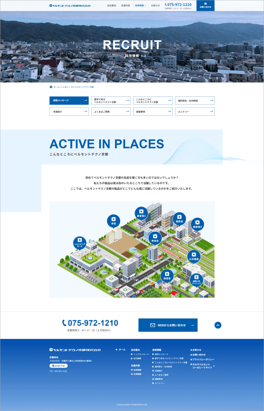 2023年にタカラベルモントグループになったベルモントテクノ京都様のWEBサイトを制作させていただきました。