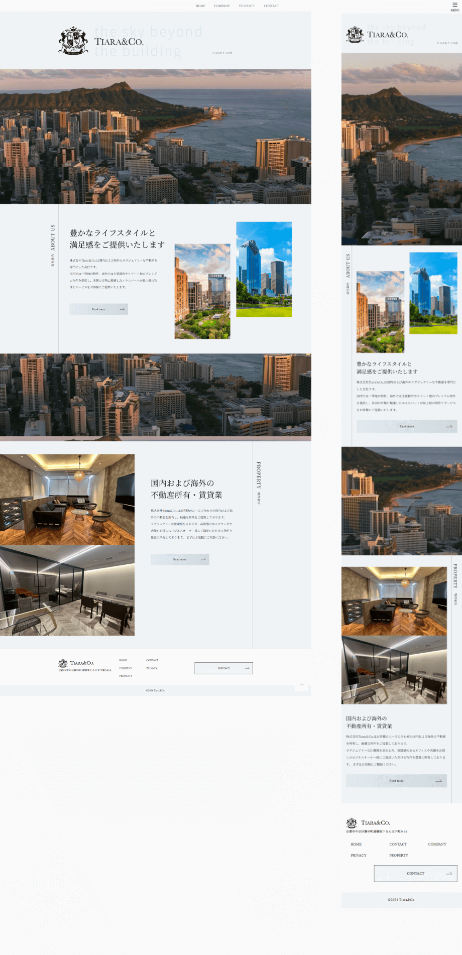 概要 | 株式会社Tiara&Co.様は国内および海外のラグジュアリーな不動産を専門にした会社です。国内では一等地の物件、海外では主要都市やリゾート地のプレミアム物件を提供し、各国の市場に精通したエキスパートが最上級の物件とサービスをお客様にご提供いたします。 |